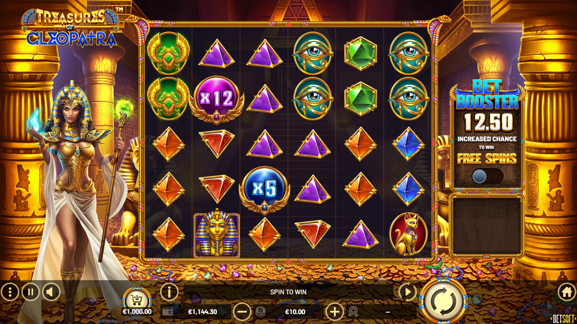 TREASURES OF CLEOPATRA™ will take you on an adventure of winning that will imprint itself on your memory, with generous FREE SPINS that can be retriggered during FREE SPINS mode, and more multiplier madness driving your wins into a truly mythological realm!