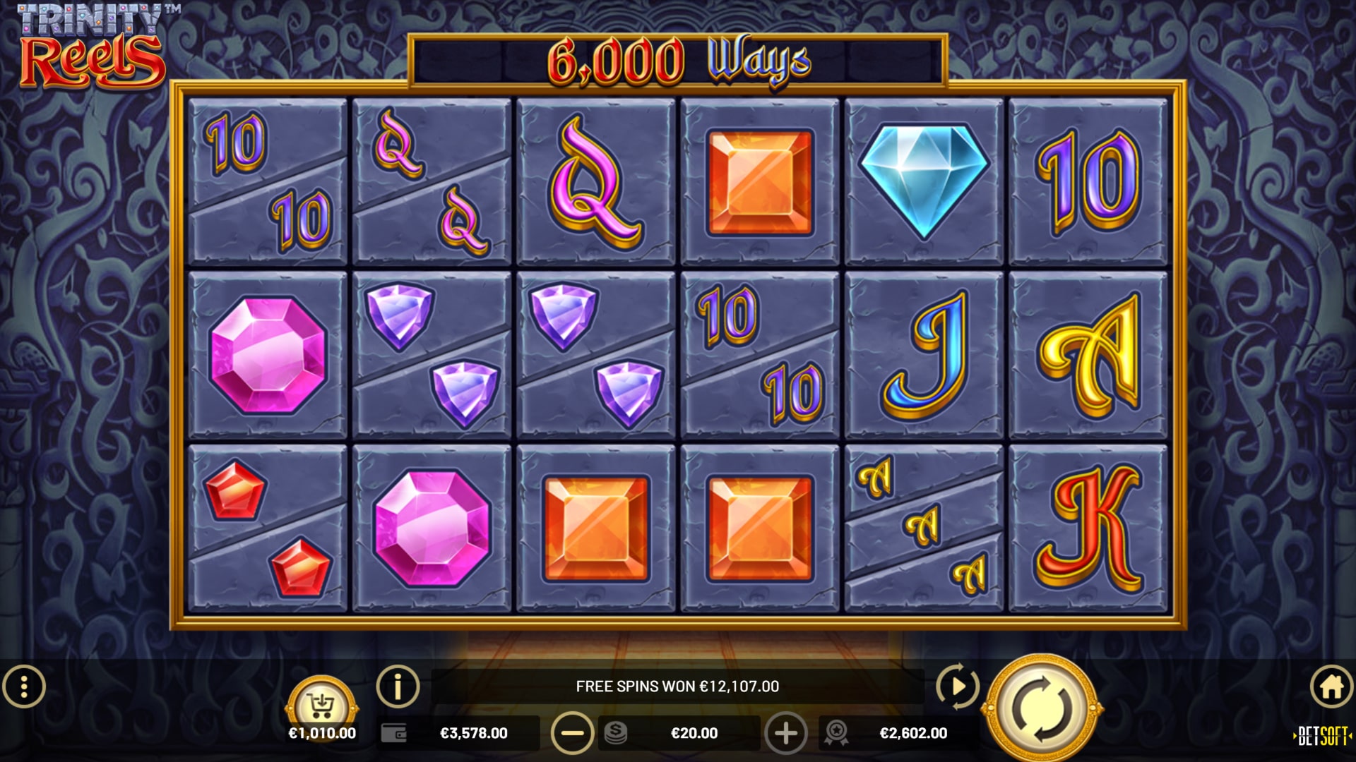 Your players will encounter a cutting edge slots experience when they play TRINITY REELS™! This innovative 6-reel, 3-row video slot features a colorful gemstone motif with smooth gameplay and up to 177,147 ways to win that will keep players coming back for more. Symbols in TRINITY REELS can be single or split, with up to 3 symbols appearing in a single position on the reels!