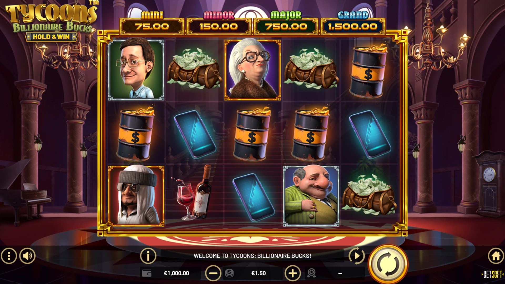 Put on your finest attire, grab a professionally made martini, and step up to the heights only a few know when you play TYCOONS: BILLIONAIRE BUCKS – HOLD & WIN™!